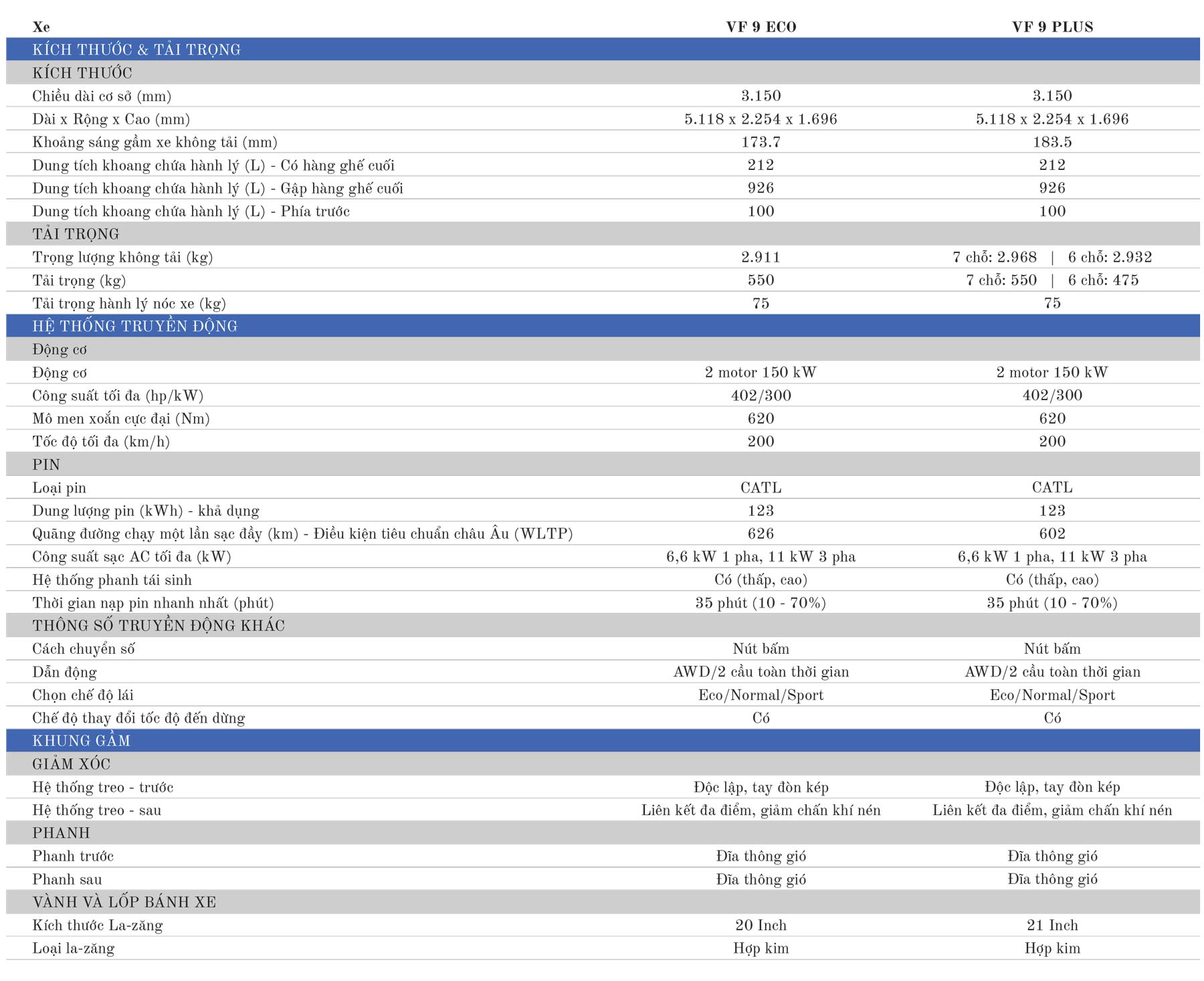 | VF9 Plus | 1.699.000.000 đ |