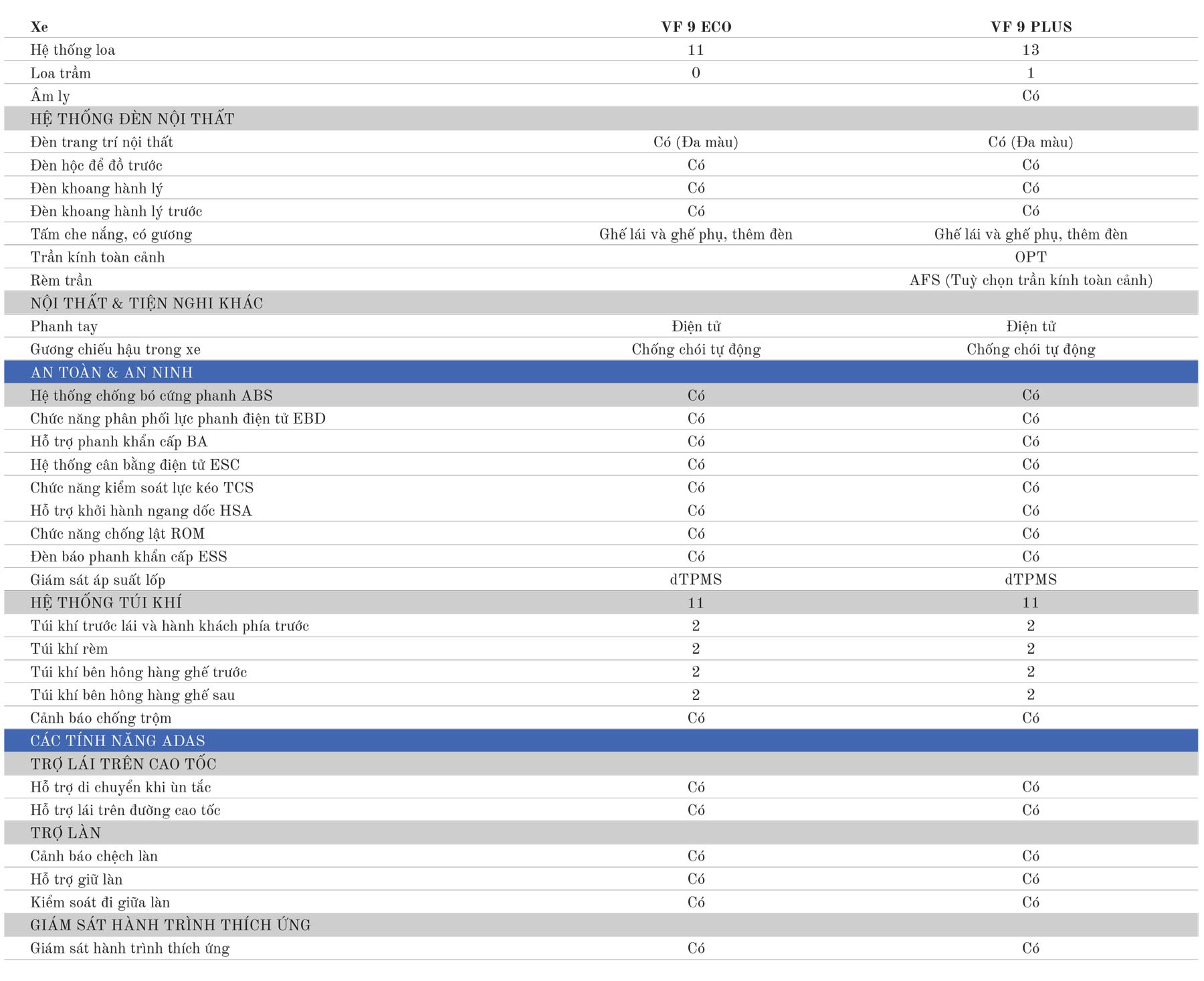 | VF9 Eco | 1.499.000.000 đ |